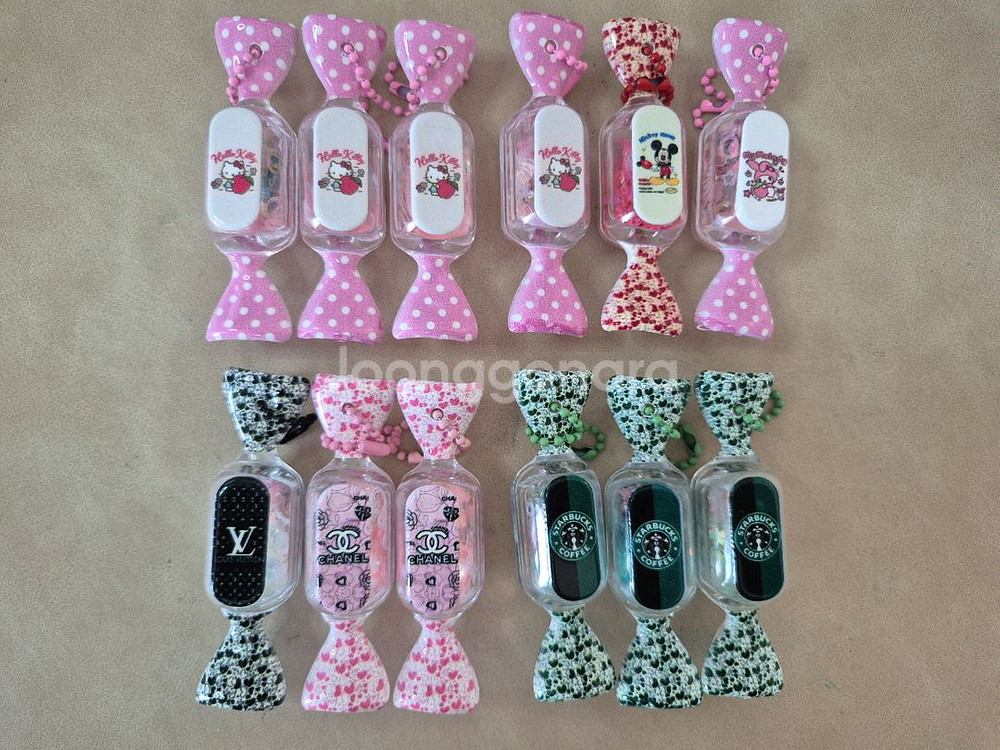 - 사탕, 우산, 핸드폰, 가방 모양 등 다양한 디자인이 있습니다 - 키티, 미키마우스, 샤넬, 스타벅스, 버버리 등 다양한 캐릭터와 브랜드 디자인이 있습니다 - 가방이나 핸드폰에 달아서 포인트를 줄 수 있습니다 사탕 1800원 키티우산 1100원 주판 1600원 치이카와 2600원 키티거울 3100원 포차코우산 2500원 핸드폰 1400원 양고리 키티/가방 1000원 키티집게 1000원 모두 개당 가격입니다♡