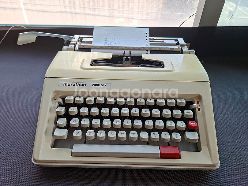 한글타자기 마라톤 2000디럭스 멋진글씨체와 무척 부드운 동작을 하는 한글타자기 입니다. 실제 사용하기에 너무 편한 타자기 입니다. 타자기 색상은 오래된느낌으로 변색이 있습니다만 오히려 빈티지 느낌은 좋습니다. 리본새것으로 보내드리고 AS무료로 해드립니다. 직접오시면 사용법을 자세히 알려드립니다. 판매-19만원 고양시 010 5285 1763