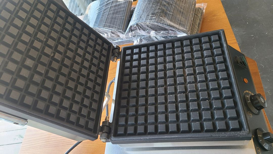 판크기 27.5 x27.5입니다 크로플생지 70그람쓰면 대각으로 두개들어갑니다. 이거보다 작은사이즈는 생지겹치는거아니면 하나만 올리셔야될거에요.. 저도 처음에 물빼는곳이없어서 청소고민하다 결국 안에 사각형크기때문에 고민하다가이거산건데 물빠지는게 있더라도 틀사이가 좁을수록청소가어렵습니다. 기본적으로청소할때는 실리콘으로된 집게써야되고 열올랐을때 키친타올깔고 물조금부어서 닦고 남은사이는 면봉쓰시면 됩니다. 청소한다고 닦고 하다보면 어쩔수없이 코팅은조금씩벗겨집니다.