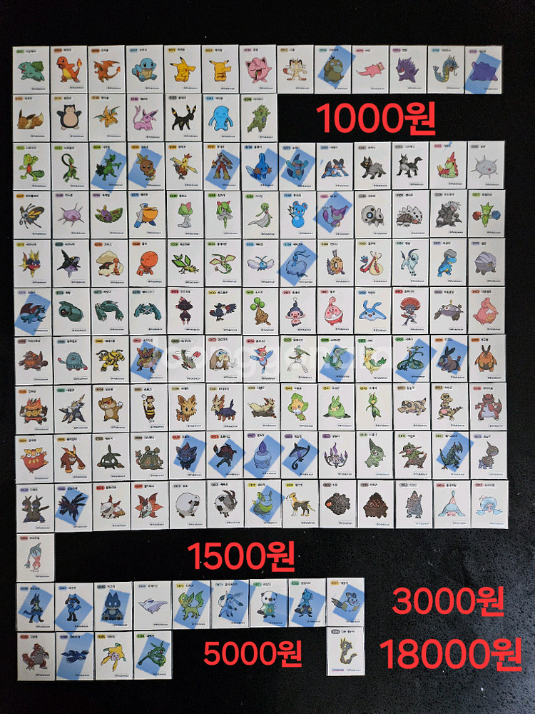 포켓몬 시즌1, 시즌2, 시즌3 개별 또는 완성본 판매합니다 시즌1 139종 일괄 15만 시즌2 163종 일괄 27만 시즌3 154종 일괄 25만 (품절) 개별구매시 장당1000원부터 사진에 금액 적혀있어요. 모든씰 opp포장 보관중 10장 이상 거래 가능해요 소량 구매 원할시 약간의 추가금액 있습니다. 파란색 체크표시는 품절 반값택배 일반택배 가능 택배비는 별도에요.