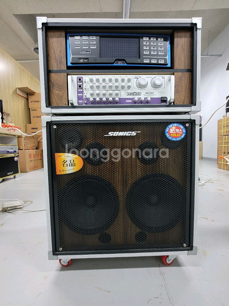 이동식 노래방 기기 풀세트입니다 소닉스 스피커와 2채널 앰프가 포함되어 있습니다 나무 캐비닛으로 제작되었고, 롤러가 부착되어 이동이 편리합니다 소닉스케이스 이동식 노래방 풀세트입니다 ㆍ12인치스피커 300W 출력 - 2채널 앰프 포함 가로 640mm, 높이 1130mm, 폭 410mm입니다 ㆍ태진반주기K1 2026년3월 신곡업데이트. ㆍ이동식케이스는 신형새제품으로 풀셋팅했습니다.깔끔하게 성능좋으며 누가봐도 .물건좋아요 하나장만하세요. 가격도 괜찮아요. ㆍ책 ㆍ리모콘 ㆍ유선마이크2개 포함 합니다. *악보 표출도 됩니다 (설치비를 주시면 현장설치도 가능합니다)