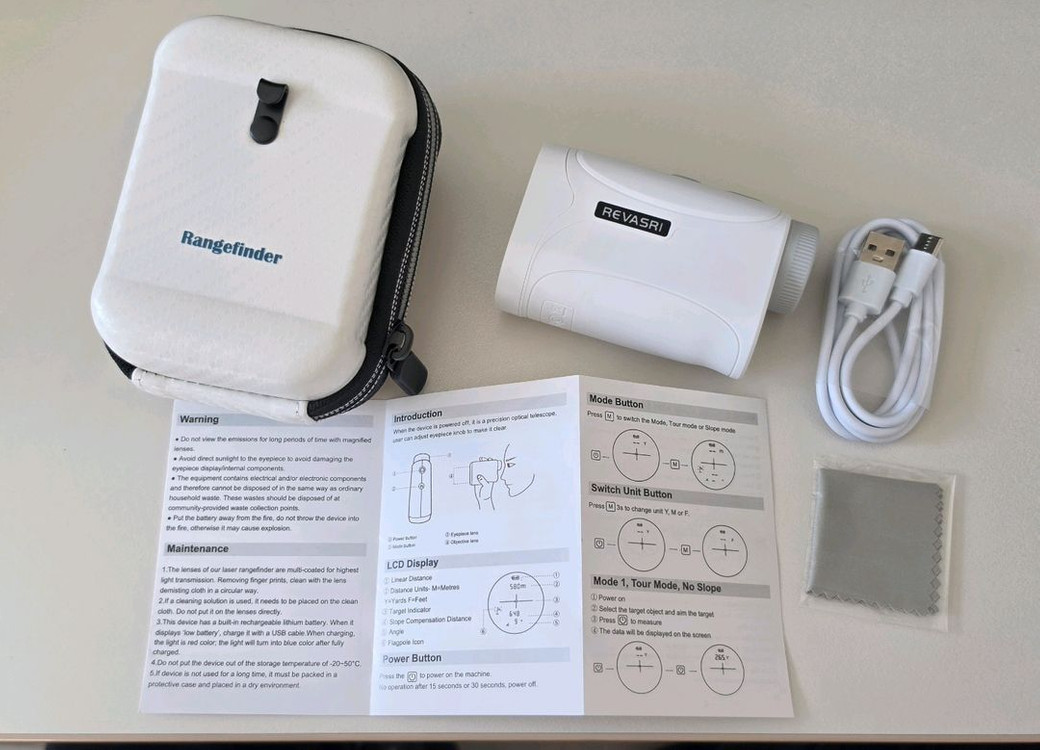 골프 거리측정기 새상품 미터,야드 측정가능 1300야드 쓰시기 편리하고 기존 제품보다 콤팩트한 사이즈 구성품은 다음과 같습니다: - 휴대용 케이스 - 렌즈 닦는 천 - 충전 케이블 C-Type - 설명서 직거래 송도자이더스타 택배 착불