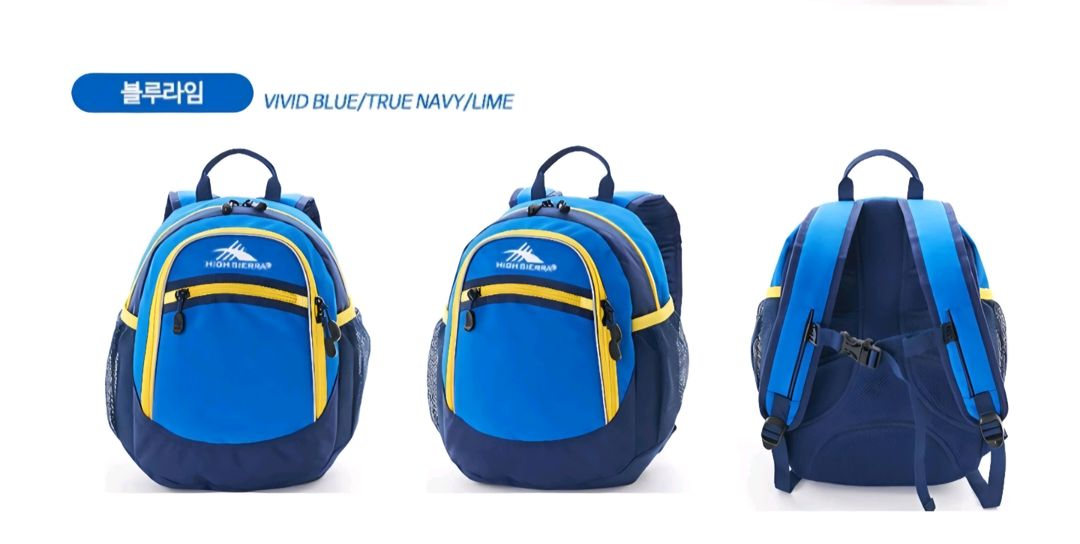 하이시에라 초등학생 백팩 소풍가방 Vivid Blue 보관만한 새상품 확인 후 구매 가능 환불 X 하이시에라 아동용 백팩입니다 - 색상: Vivid Blue/True Navy/Lime - 사이즈: 약 27 * 16.5 * 37.5 cm - 무게: 약 0.335 kg - 용량: 약 13L - 재질: 폴리에스터 100% 아이들이 편안하게 사용할 수 있도록 설계되었고, 튼튼한 내구성을 자랑합니다