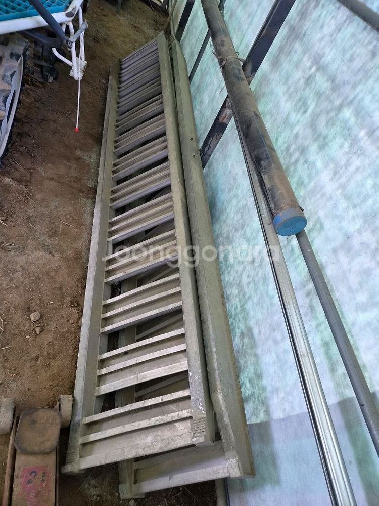 알루미늄 사다리입니다. 3.5톤 12자인걸로기억합니다. 굴착기 2.0 톤 상하차용으로 사용 했었습니다. 셀프로더 구입으로 불용되어 판매합니다. 네고 쪼끔 가능합니다