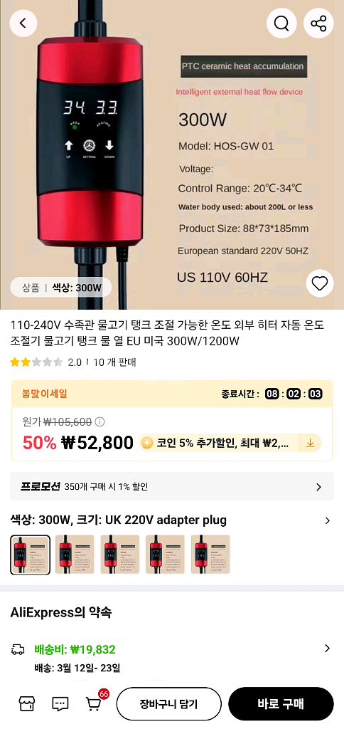 수족관용 온도조절기 히터 입니다. 단순 개봉만해본 미사용 제품입니다.