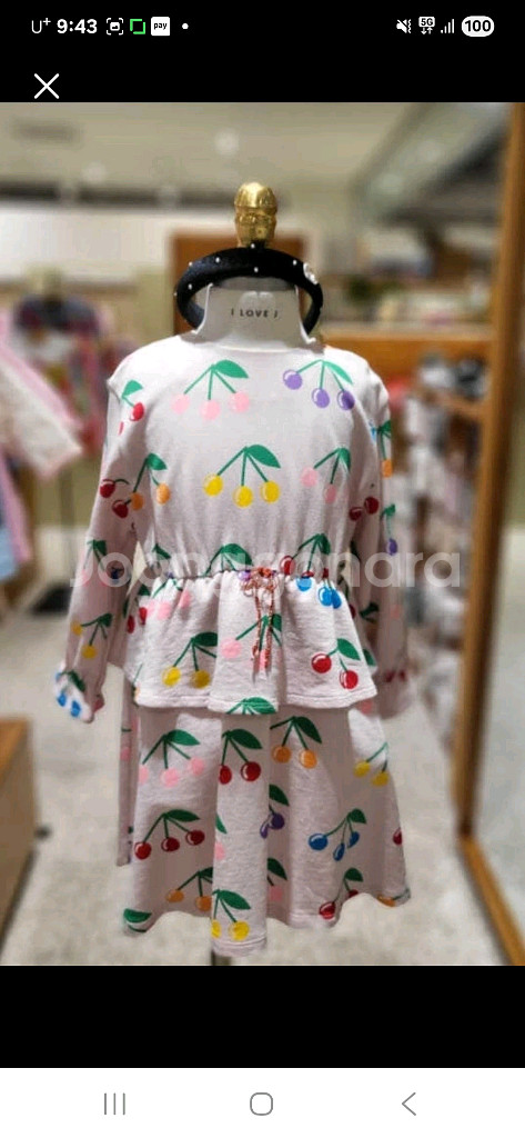귀여운 체리 패턴의 원피스예요. 상의는 벨트가 있는 디자인이고 하의는 스커트로 구성되어 있어요. 상태 양호한 중고 제품입니다.