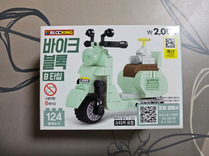 다이소 바이크 블록 판매합니다. 8세 이상 사용 가능하고, 블록 조각은 124개 들어있습니다. 스티커도 포함되어 있습니다. 별도 문의 없으시면 바로 안전결제 부탁드려요!