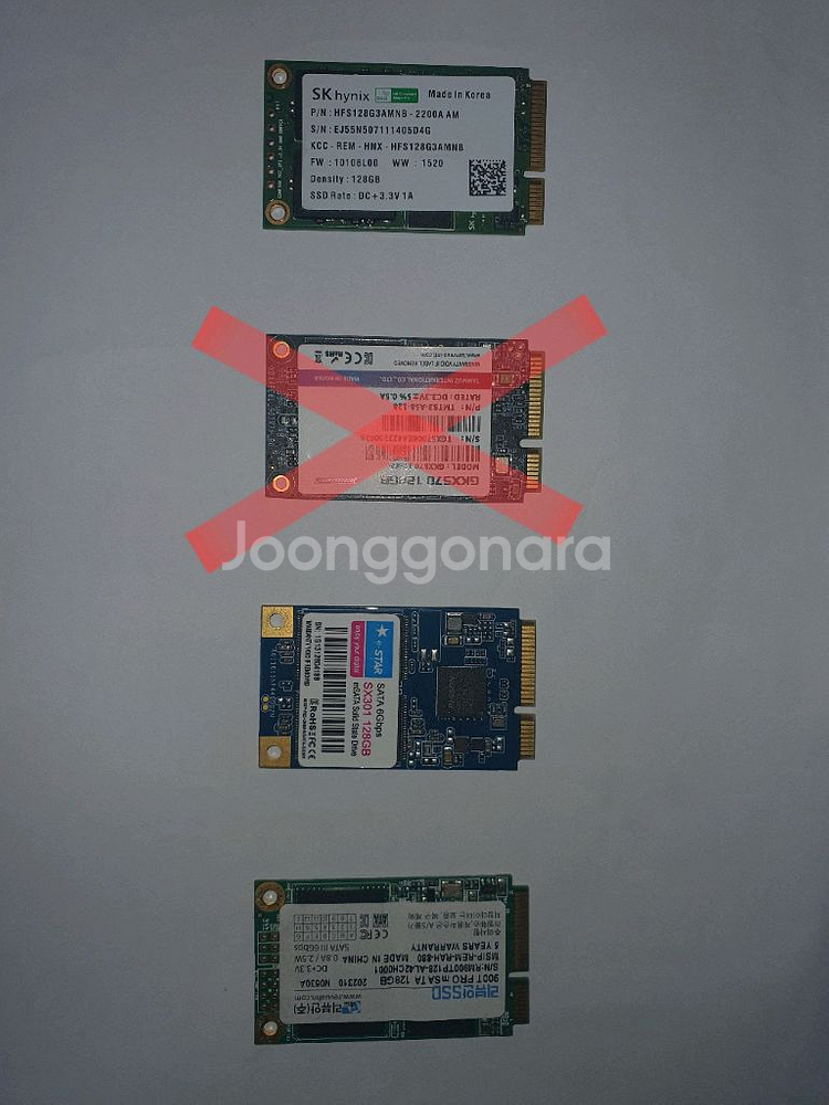 Mini SATA(mSATA) SATA3 (6Gb/s) SK Hynix 15,000원 e-star, 리뷰안 10,000원 개당 가격입니다. 작동 이상없습니다. SK Hynix 수량 있습니다. e-star 2개 리뷰안 1개(라벨에 이름 써있음. 제품엔 이상없음.마지막사진 참조.) 고정나사 없습니다. 우체국택배로만 거래합니다.