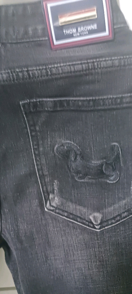 톰 브 라 운 데님 청바지예요. 특유의 고딕 디테일과 독특한 실루엣이 매력적인 아이템입니다. 상태 양호하고 착용감 좋아요! 30