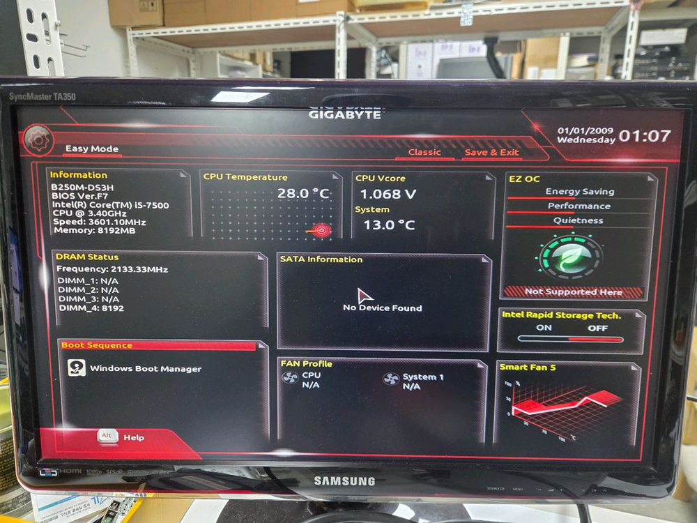 기가바이트 B250M-DS3H 메인보드 - 인텔 i5-7500 CPU - 에너지 효율적인 디자인으로 전력 소비를 줄여줍니다 - 안정적인 시스템 작동을 보장합니다