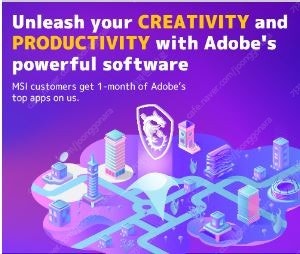MSI 제품 구매하고 받은 어도비 Adobe Creative Cloud 크리에이티브 클라우드 1개월 리딤코드 팝니다. 전송 후에는 환불 불가입니다. 연락주세요