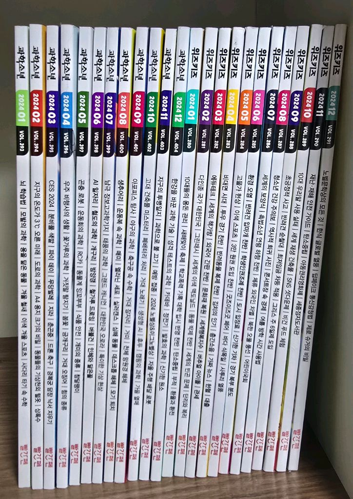 과학소년, 위즈키즈 아이가 꾸준하게 보다가 커서 정리합니다. 책이라서 무게가 있어서 택배비는 5천원입니다. 2024년 1월~12월 (24권) 2025년 1월~04월 (8권)