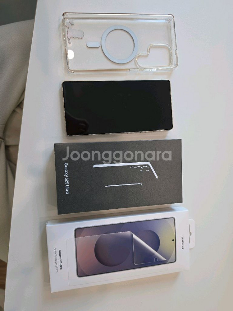 Galaxy S25 Ultra 티타늄 핑크골드 1테라 입니다. 작년 사전 예약으로 구매했었고 2025.2.5일 최초통화였습니다. 맥세이프 케이스에 끼워져 있고 정품 강화유리 필름끼고 사용하여 상태 좋은편이고 찍힘 없어요. 번인 현상 없고 배터리도 좋습니다. 다만 티타늄 재질 특성상 옆면 테두리에 빛 반사에 따라 미세 스크래치가 보였다. 안 보였다 합니다. 사용하던 맥세이프 케이스와 강화 유리 필름 붙은 채로 드리며, 새상품인 미개봉 정품 필름 하나 드립니다. 케이블은 긴 걸로 드립니다. 경기도 수원 망포동 직거래 원합니다. 택배거래시 우체국택배이용, (+5000) 파손면책 동의 시 보내드립니다.