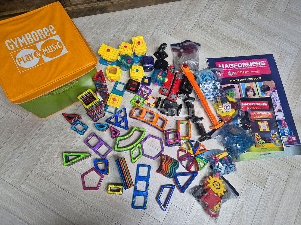 맥포머스 자석 블럭 세트입니다 짐보리 가방에 담겨 있어서 보관 및 이동이 편리합니다 S.T.E.A.M 마스터로 가이드북 보며 여러가지 활용 가능합니다 대전 직거래가능 택배 시 착불