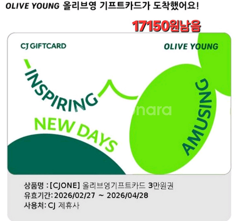올리브영 3만원권 기프트카드 잔액:17150원