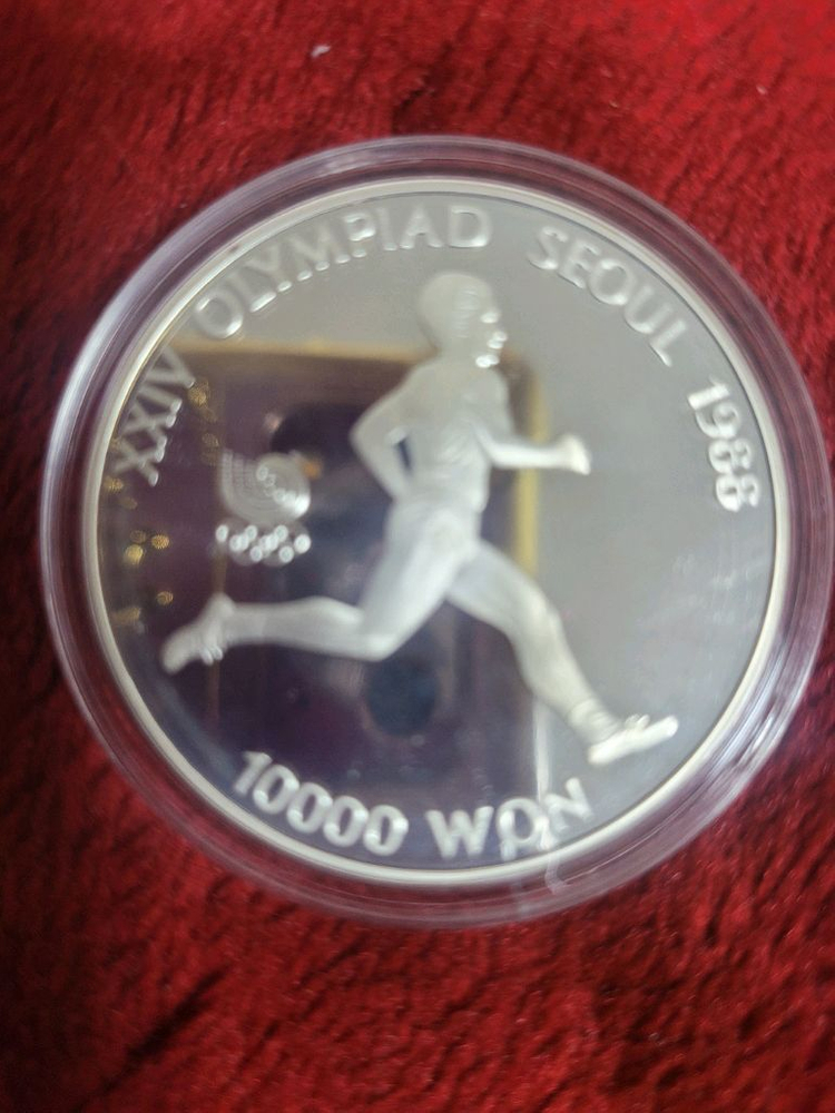 1988년 서울 올림픽 기념 1차 마라톤 푸루프은화 주화입니다 - 10000원 주화 중량 33.62g 순은 1온스 푸루프 상태좋아요 사제케이스에 넣어드림
