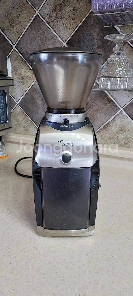 바라짜 프레시소 V-785 커피 분쇄기입니다 집에서 사용하던 제품이에요 연식은 있지만 며칠에 한번정도 사용했고 커피를 못먹게되어 보관하다 판매합니다 - 40mm 스틸 버 사용 - 40단계 분쇄도 조절 가능 - 원두 용량은 250g입니다 크기는 12 x 16 x 35 cm, 무게는 3.6kg입니다 택포 가격이고 뽁뽁이 포장 잘해서 보내 드려요