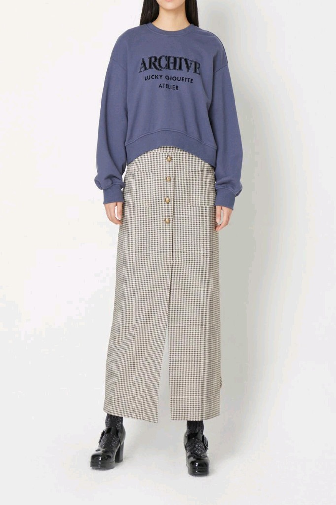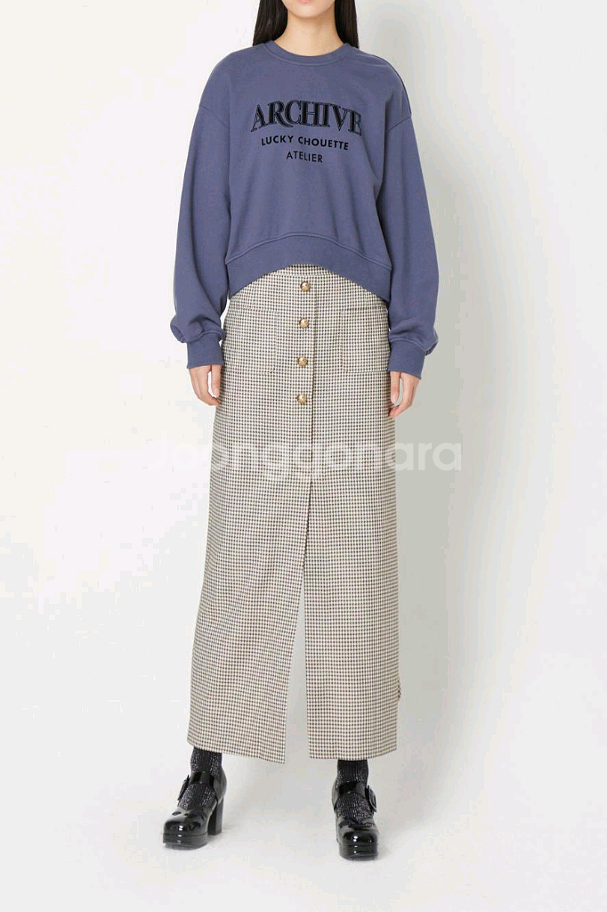 23년 제품 정가 448000 폴리62 레이온38 waist band point 롱스커트 허리 34~35 총장 95 앞 슬릿 50 뒷 슬릿 40 약간 데님 느낌의 까슬한 원단이라 보플이나 뜯김 걱정 없어 실용적이며 무게가 있어 묵직하게 떨어져 착용 시 훨씬 더 이쁩니다. 브라운 하운드 체크라 유행 없이 착용할 스테디 제품입니다. 뒷 러플이 걸을 때마다 정말 이쁩니다~ 앞은 섹시하고 뒤는 귀엽습니다. 제품 명칭이 허리밴드포인트스커트인 만큼 허리밴딩도 엣지 있습니다.