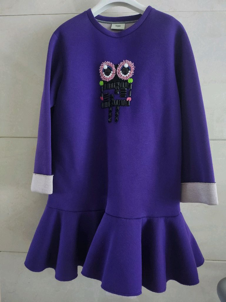 보라색 펜디 키즈 원피스 10Y 사이즈입니다. 밑단에 프릴이 달려있어 더욱 사랑스러운 느낌을 줍니다. 매장구매 상품이고 얼룩 하자 전혀없이 상태 좋습니다