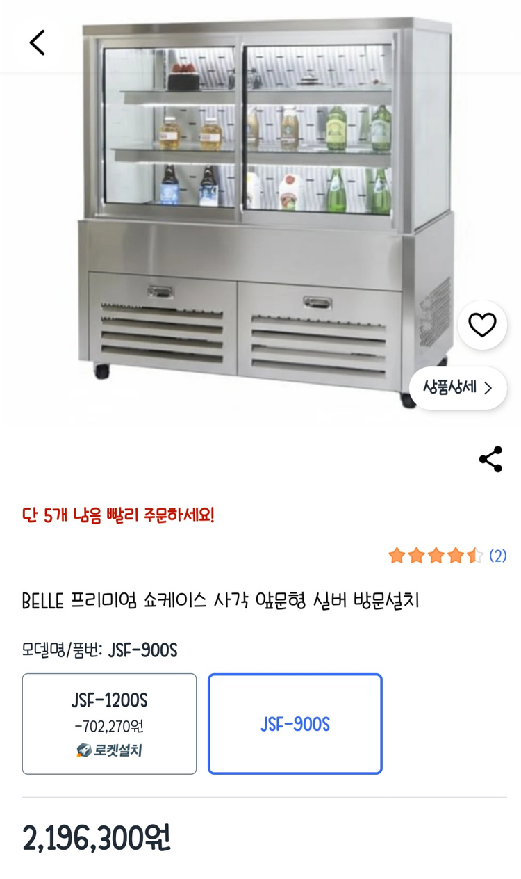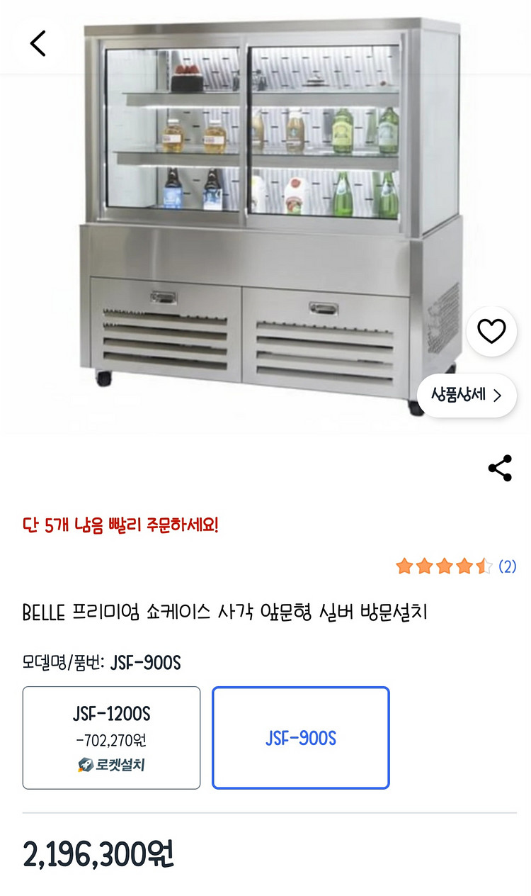 프리미엄 쇼케이스 사각 앞문형 실버 모델입니다 - 3중 페어유리로 외부의 열이 내부로 전달되는 것을 최소화하여 내부 온도를 일정하게 유지합니다 - 우레탄 발포 케이스를 사용하여 내구성이 강하고 열 전달을 효과적으로 차단하여 내부 온도를 일정하게 유지합니다 - 스마트 온도 제어 시스템으로 실시간으로 온도를 모니터링하고 조절하여 식품을 신선하고 안전하게 보관합니다 - 국산 유리와 국산 스테인리스 철판을 사용하여 제품의 품질과 내구성을 높였습니다 모델명: JSF-900S 크기: 900 x 650 x 1225 mm 무게: 150 kg 용량: 278 L 방문설치 무료로 가능하십니다.