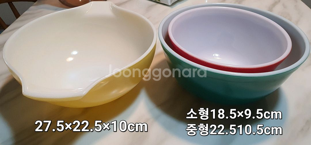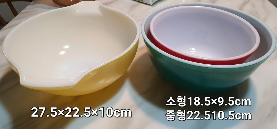 추억의 빈티지 파이렉스 믹싱볼 3종 판매합니다. 옐로우, 그린, 레드 색상이 있으며, 크기는 이미지 참고 부탁드립니다. 빈티지 제품 특성상 기스나 사용감 있는 점 감안해주세요. *중형 22.5/10.5cm 27000원 *소형 18.5/9.5cm 23000원 양손잡이27.5×22.5×10cm₩30000 [네이버 블로그] 블로그를 소개합니다. skn00899의블로그 | 미쎄스신컬렉션 https://m.blog.naver.com/skn00899 ※매너거래 해주세요. ※반품환불.네고 예민 정중히 사양합니다. 택배 가능합니다