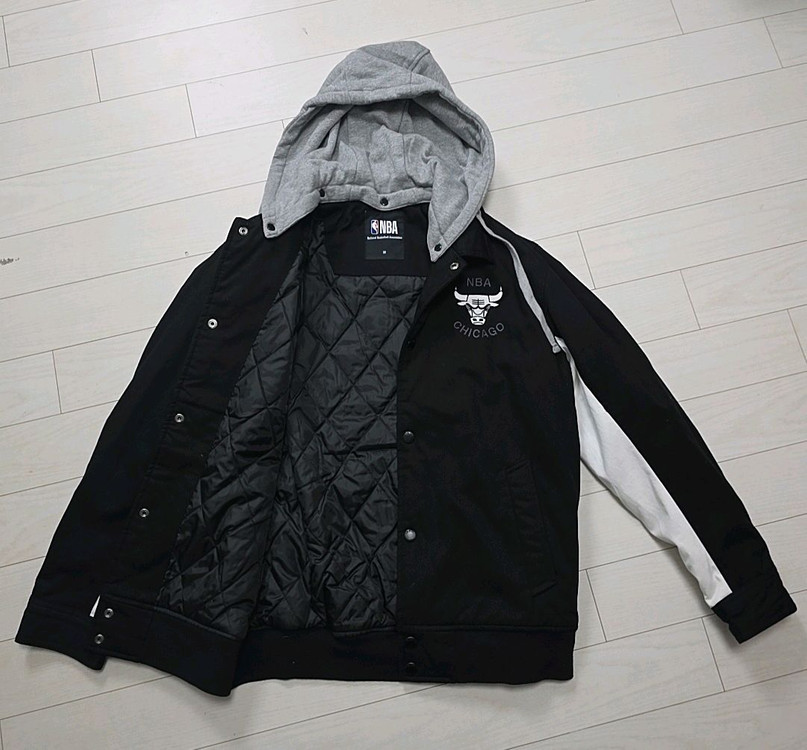 상태좋은 NBA 시카고불스 바시티자켓 입니다! 후드는 탈부착 가능하구요 가슴단면 55 총장 65 직거래, 일반택배 다 가능합니다