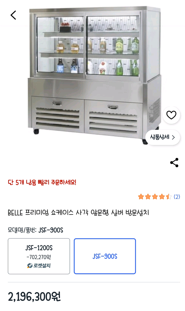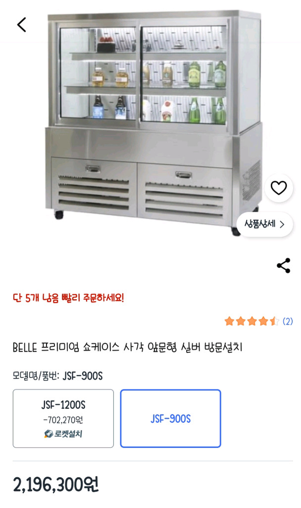 음식점이나 카페에서 사용하는 전문 쇼케이스예요. 유리 진열창과 하단 수납공간이 있어서 실용적이고, 고품질 냉장고 시스템으로 안정적인 성능을 제공합니다. - 3중 페어유리로 외부의 열이 내부로 전달되는 것을 최소화하여 내부 온도를 일정하게 유지합니다 - 우레탄 발포 케이스를 사용하여 내구성이 강하고 열 전달을 효과적으로 차단하여 내부 온도를 일정하게 유지합니다 - 스마트 온도 제어 시스템으로 실시간으로 온도를 모니터링하고 조절하여 식품을 신선하고 안전하게 보관합니다 - 국산 유리와 국산 스테인리스 철판을 사용하여 제품의 품질과 내구성을 높였습니다 모델명: JSF-900S 크기: 900 x 650 x 1225 mm 무게: 150 kg 용량: 278 L 싸게팝니다. 기사님 방문설치 무료로 가능하십니다. 설치까지 생각하시면 아주 저렴한거에요!