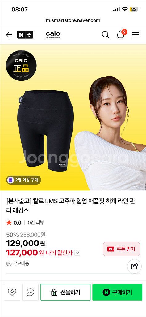 EMS 고주파 기능이 있는 래인 레깅스예요. 홈트레이닝이나 운동 후 마사지용으로 좋아요. 깔끔한 블랙 컬러로 어디든 잘 어울려요.