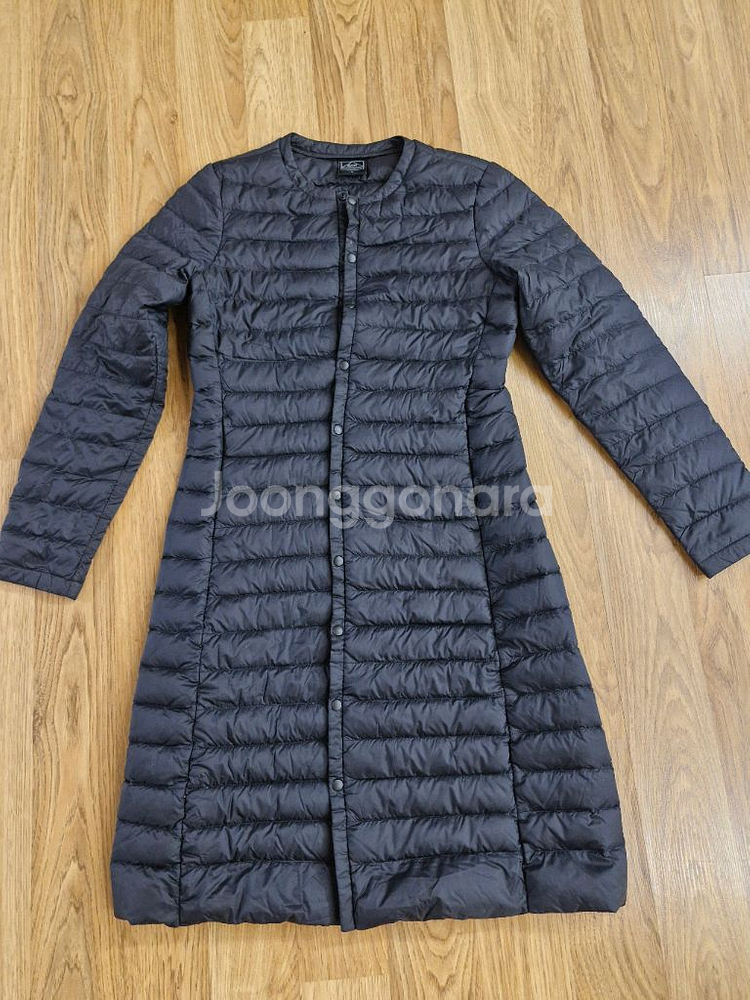 EXR 여성 경량 패딩 코트 블랙 색상 90(S) 사이즈입니다 날씬해 보이고 따뜻합니다 겉감과 안감 모두 나일론 100%로 가볍고 편안합니다 충전재는 오리솜털 80%, 오리깃털 20%로 따뜻하면서도 가벼운 착용감을 자랑합니다 전체적으로 깨끗하고 상태 양호합니다
