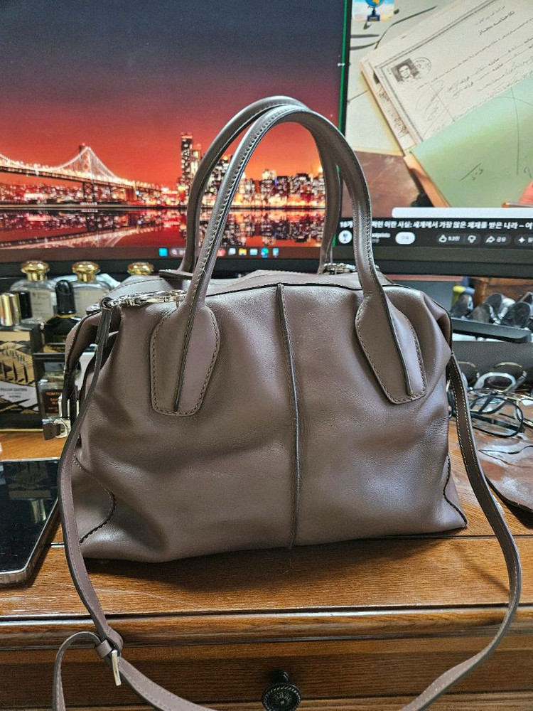 토즈 가죽 토트백입니다 브라운 컬러의 D백 미디움 사이즈입니다 가로 35cm 세로 23cm 너비 20cm 현대백화점 240만원 구입한 이태리 정품입니다 가죽 소재 특성상 사용감은 있지만, 전체적으로 컨디션 좋습니다 데일리백으로 활용하기 좋은 디자인입니다