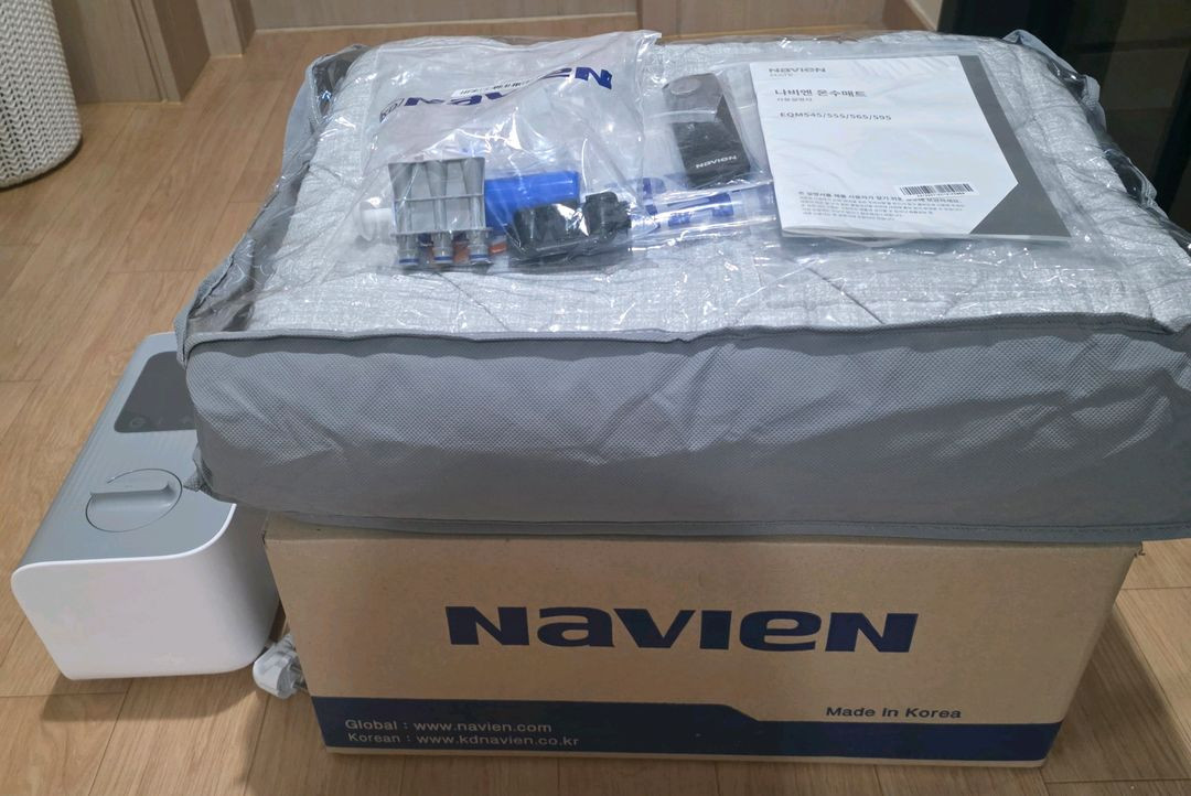 경동나비엔 온수매트 EQM565-QS 판매합니다. 23년 11월에 385000원에 구매해서 무상보증기간 8개월 남아있구요. 온수매트는 추가구매한 새상품으로 보내드려요. 보일러 상태 흠집도 거의 없는 최상 상태이고 구성품 전부 그대로 있습니다. 나비엔 스마트 어플로 원격제어 되는 모델이어서 리모컨은 아예 사용도 안했고 매트 커버는 세탁 및 건조 해놨습니다. 침대를 큰사이즈로 교체하게 돼서 저렴하게 내놓습니다. 부피가 있어 택배는 2개로 나눠서 롯데택배로 발송할거고 택배비 제가 부담하고 택포 25만원에 판매합니다.