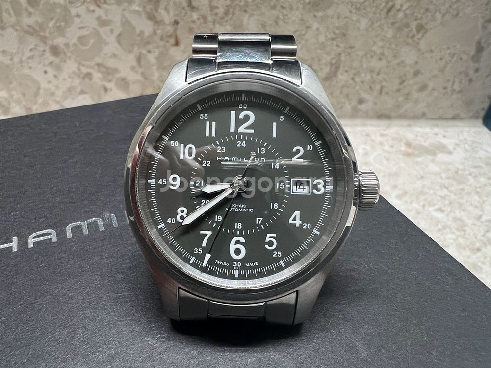 해밀턴 카키필드 오토매틱 시계 38mm 모델 판매합니다 - 모델 번호는 H70595163입니다 - 사파이어 크리스탈 글래스를 사용하여 긁힘에 강하고, 100m 방수 기능이 있어 생활 방수에도 용이합니다 - 오토매틱 시계로, 움직임에 따라 자동으로 태엽이 감겨 편리합니다 ❤️현대백화점 충청점에서 2016년 구매했습니다 ❤️박스, 보증서, 여분 메탈 코 포함되어 있습니다 ❤️정상 작동하며, 생활기스 정도 있습니다 ❤️스마트워치만 차서 정리합니다 안심결제 안하며 충북 청주 직거래로 판매합니다