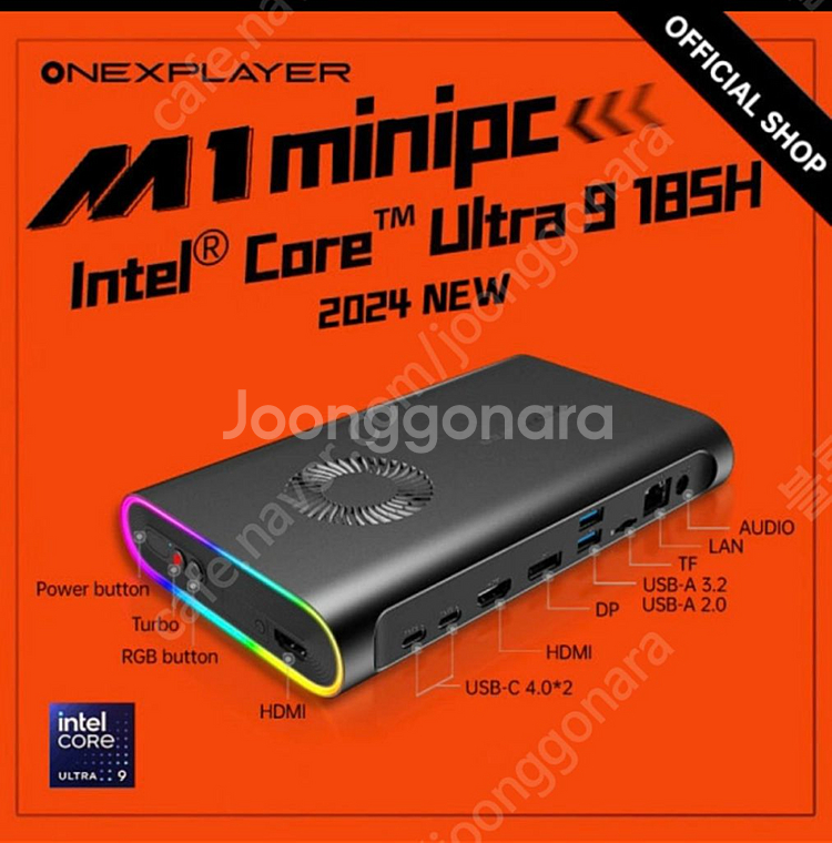 Intel Core Ultra 9 185H 프로세서 탑재 - 16코어, 22스레드 - Intel Arc GPU - 듀얼 USB 4.0 포트 - Oculink 포트 - 16가지 색상의 RGB 조명 - 60W TDP - 듀얼 구리 냉각 시스템 - microSD 카드 슬롯, HDMI, DisplayPort, LAN 포트, 3.5mm 오디오 잭 지원 특이사항 1. 램은 32기가, nvme는 1테라 입니다. 2. 기존 중국산 아답터는 100w라서 국내 아답터로 대체해서 쓰고 있습니다.(아트뮤140w) 3. 초기화 해서 윈도우 인증까지 해뒀습니다 4. 박스 없습니다 본체 아답터만 드립니다 분당이매한신 직거래합니다 제가 2차 구매자입니다