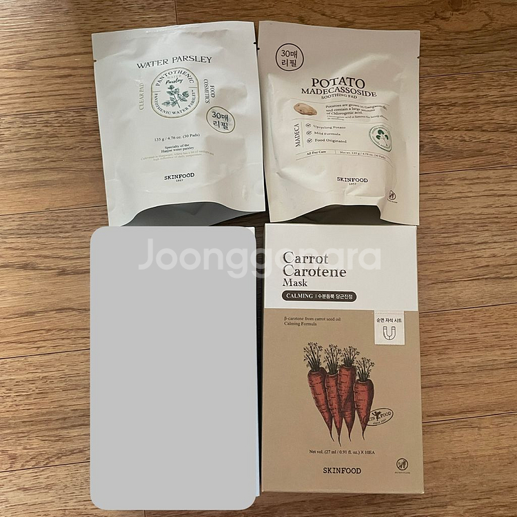 스킨푸드 캐롯 카로틴 마스크팩 (당근) 4매 (상자없음) 0.4 포테이토 마데카소사이드 수딩 패드 리필 30매 0.4 판토테닉 워터파슬리 클리어 리필 30매 0.4 전부 새상품 28년도까지 8,000원부터 택배 가능 ⭐️화장품 정리중이라 색조 • 기초 • 클렌징 다 판매중이니 판매목록 잘 확인해주세요! 🩷8천원 이상 화장품 2개 -1,000원 할인 3개 -2,000원 할인, 4개 -3,000원 할인 ••• ❌중고거래상 어떤 이유로도 반품 및 환불 불가 🚚반값: +2,200원, 일반: +3,500원