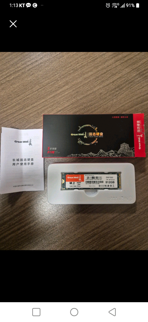 M.2 NVMe SSD 512GB입니다. 박스와 설명서가 함께 있어요. 새제품 급으로 작동 시험만 하고 보관만 해둔 사용시간 0h 입니다