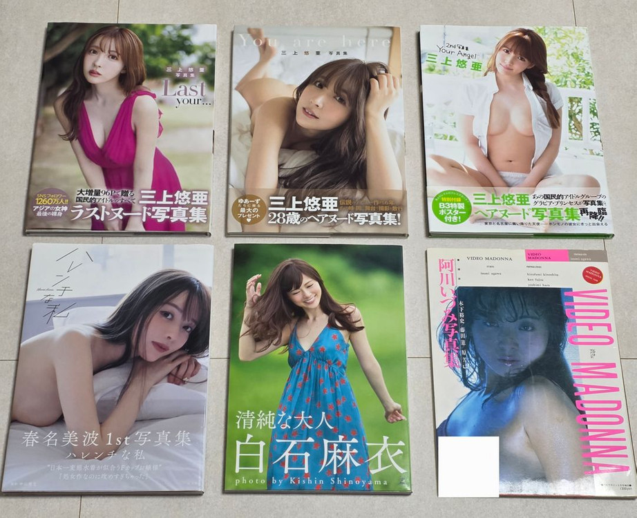[가격조정] 이번 주말까지 구매시 가격에서 추가로 10% 가격조정해드립니다 일본 사진집 6권 판매합니다. 2권 이상 구매시 구매 가능하세요 배송료는 권 수 관계 없이 5000원 입니다. 1. AV배우 미카미 유아 Last your: 4만원 2. AV배우 미카미 유아 You are here: 4만원 3. AV배우 미카미 유아 Your Angel: 4만원 4. 그라비아 모델 하루나 미나미 1st 사진집: 2만원 5. 노기자카46 시라이시 마이 사진집: 1.5만원 6. AV배우 아가와 이즈미 사진집: 2만원