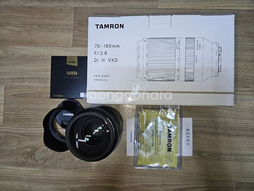 탐론 70-180mm F/2.8 Di III VXD 렌즈 판매합니다 구매 즉시 코엠스킨 부착하여 사용했고, 상태 매우 좋습니다. 정품 벤로 필터 포함입니다. 직거래 용현5동 가능하고, 다음주 월요일부터 목요일까지 평내동 가늑합니다. 택배거래 환불불가 조건 가능하고, +5,000원입니다.