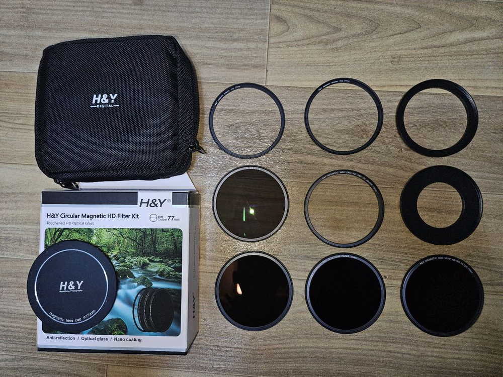 H&Y 마그네틱 ND 필터 키트 77mm입니다 ND 8/64/1000 + CPL 필터에 마그네틱링 2개, 49-77/67-77 스텝업링 포함입니다. 자주 사용하지 않아 상태 좋습니다. 직거래 용현5동 가능하고, 다음주 월요일부터 목요일까지 평내동 가늑합니다. 택배거래 환불불가 조건 가능하고, +5,000원입니다.