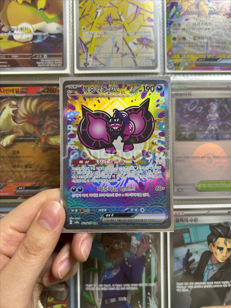 개인정보(거래정보)를 주고받는 행위는 사기에 노출될 수 있으므로 즉시 중고나라로 신고해 주세요카드 뽑고 바로 슬리브에 넣어서 앨범에 보관하기 때문에 생활하자 없습니다. 반택비 0.2 일택비 0.4