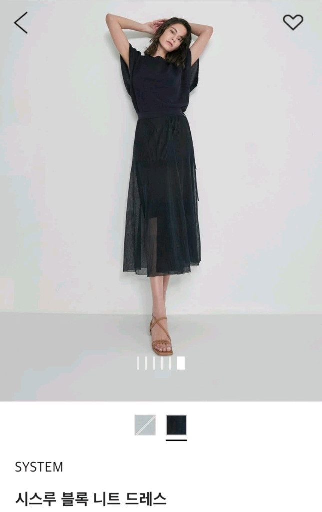 한섬 브랜드 SYSTEM 시스루 블록 니트 드레스 판매합니다. 구매 후 외부 착용 없이 보관만 한 제품으로 상태 매우 좋습니다. 실제 사진이 좀 밝게 나왔는데 모텔 컷 사진과 동일 합니다. 택 그대로 있으며 거의 새상품 컨디션입니다. 니트 상의와 시스루 플리츠 스커트가 블록 디자인으로 니트 탑 + 스커트를 레이어드한 느낌의 여성스러운 드레스입니다. 움직일 때 스커트 라인이 예쁘게 퍼지는 디자인입니다. • 브랜드 : SYSTEM (한섬) • 제품명 : 시스루 블록 니트 드레스 • 품번 : SY2A5-KDR272W • 색상 : 다크네이비 • 사이즈 : 90 (55 추천) • 제조 : 2020년 • 상태 : 외부 미착용 / 택 있음 이너 슬립 함께 구성된 제품입니다. 직거래 / 택배 가능 반품/ 환불 안됨