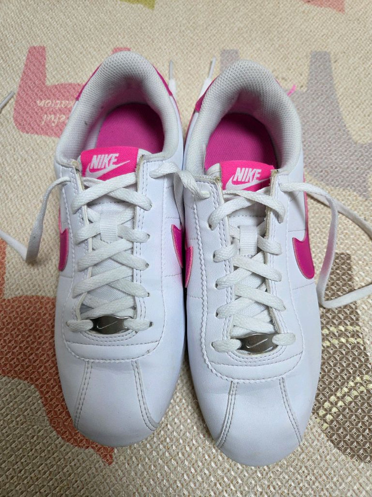 개인정보(거래정보)를 주고받는 행위는 사기에 노출될 수 있으므로 즉시 중고나라로 신고해 주세요나이키키즈 코르테즈 운동화 흰색핑크 230 입니다. 백화점상품 구매 앞코 살짝 벗겨짐 있어요. 사진 참고부탁드립니다. 세탁했습니다. 반값택배비별도 cu만 가능합니다