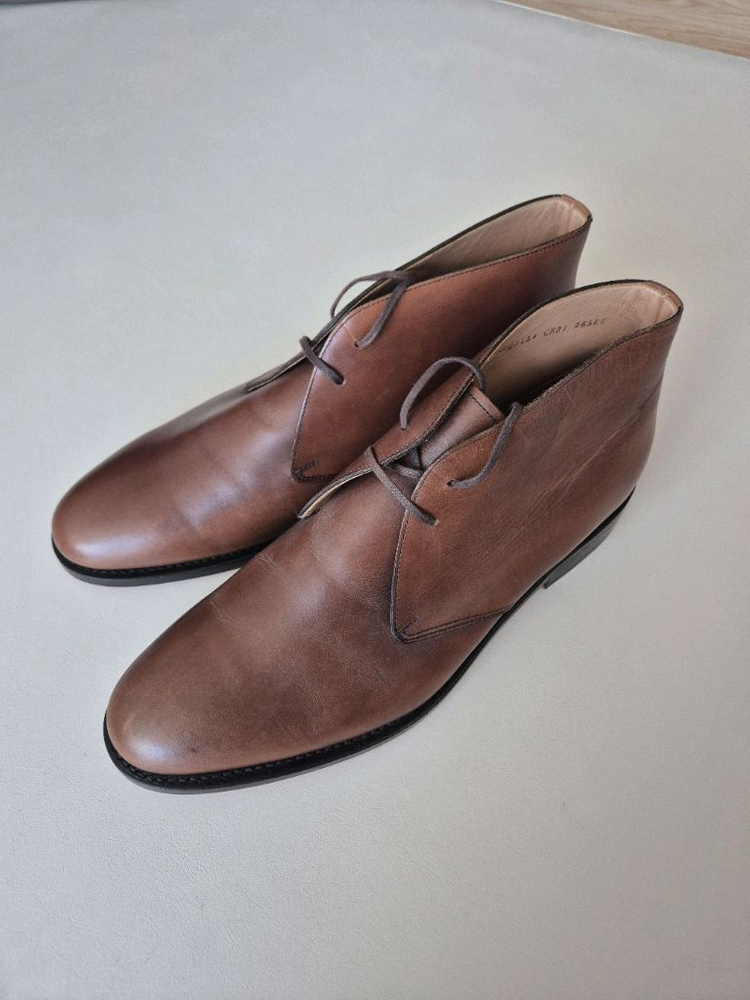 브라운 색상의 처카 부츠입니다 부드러운 가죽 소재로 제작되어 편안한 착용감을 제공합니다 캐주얼, 포멀한 룩에 모두 잘 어울리는 디자인입니다 시착주름 미세상처 있습니다(사진확인)
