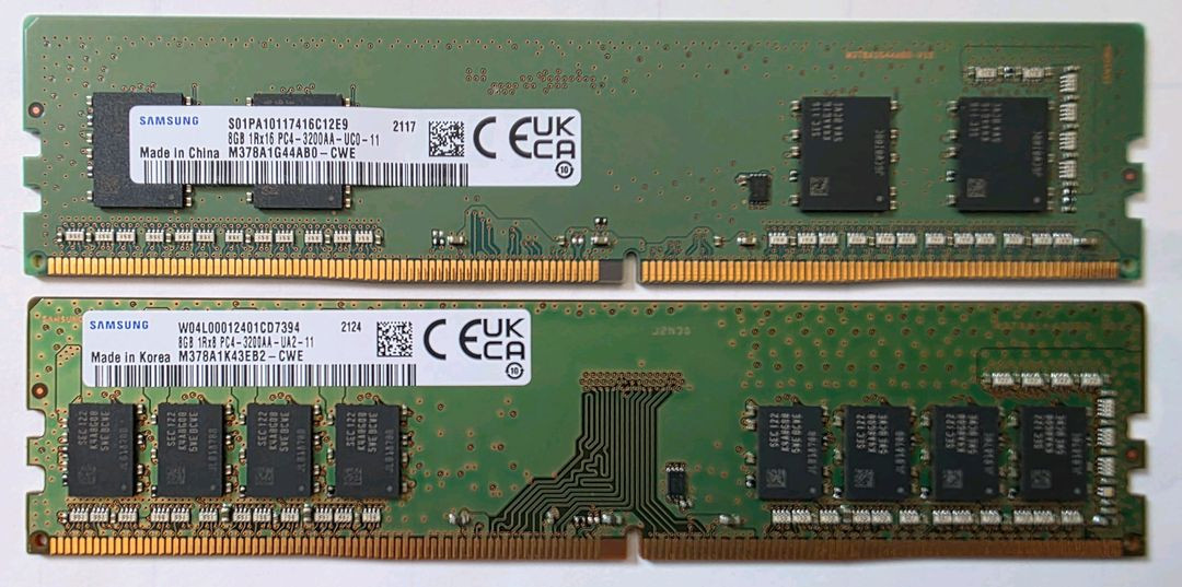 삼성 정품 DDR4 3200 16GB 메모리 8GB 2개입니다. 4칩 1개,8칩 1개 단면입니다 이상없이 잘 사용하던 제품입니다 B250M 보드에는 2400으로 표기되네요 3200 맞습니다 내고,안심결제× 채팅먼저 주세요.