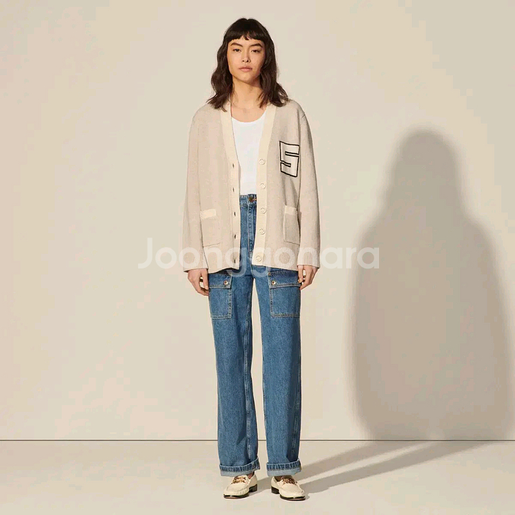 (새상품) 산드로 울 100% 로고 패치 가디건 2사이즈 울 100% 가디건으로 브이넥과 대비를 이루는 산드로 음각 버튼 플래킷 S 자카드 레터링이 있는 가슴 포인트 소재 메인 원단 : 울 100% 모델 175cm 1사이즈 착용 택있는 정품 새상품