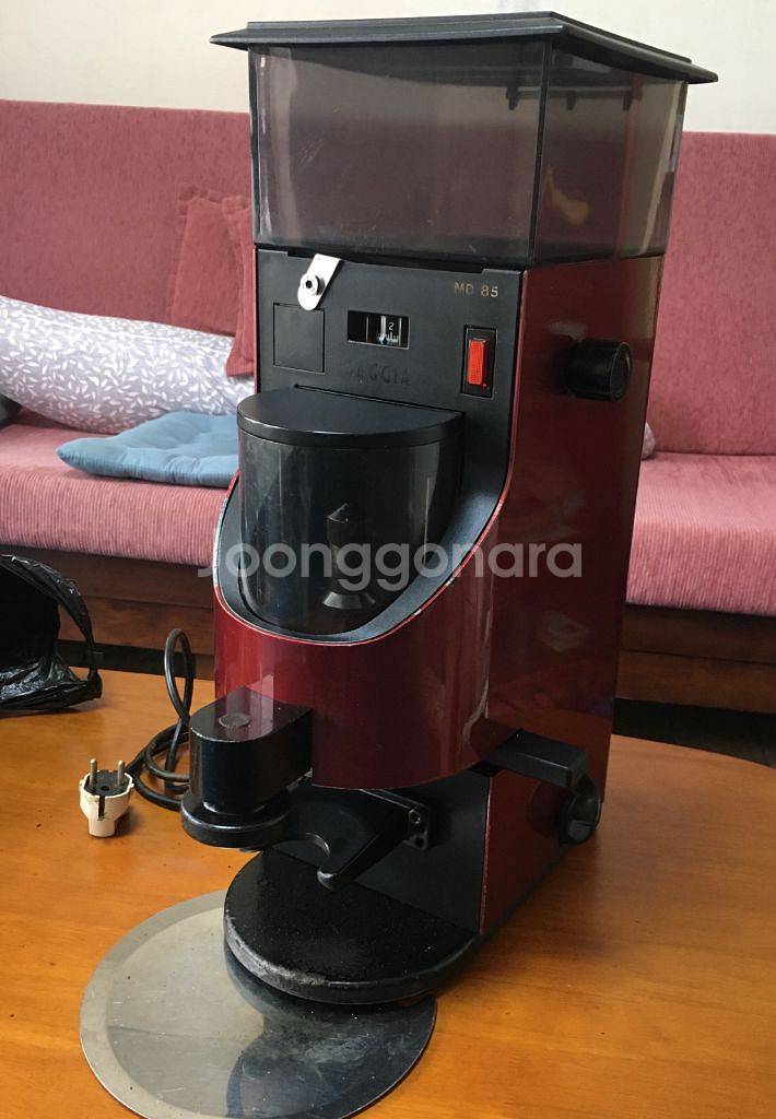업소용 에스프레소 머신 명제조사 이탈리아 가찌아의 에스프레소 전용 커피 그라인더 MD-85 입니다. 모델명 85는 그라인더 날의 사이즈 85mm를 의미합니다. 연식있으나 작동상의 문제는 없으며 외관상태는 앞쪽에 칠 벗겨진 곳 일부 있지만 비교적 양호합니다.