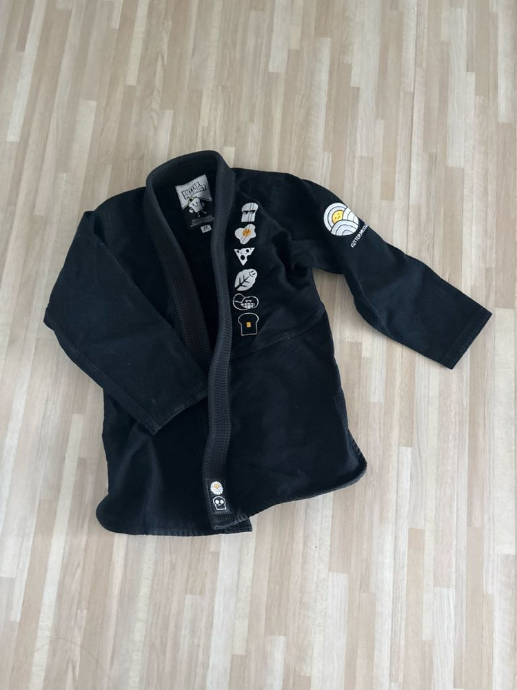 A0 사이즈 주짓수 도복이에요. 상의와 하의 세트로 구성되어 있고, 다양한 패치들이 포인트로 들어가 있어요. 사용감은 있지만 전체적으로 깔끔한 상태입니다. 현재 인터넷 가격 179000원입니다. 가방도 있습니다. 택배비 별도입니다.