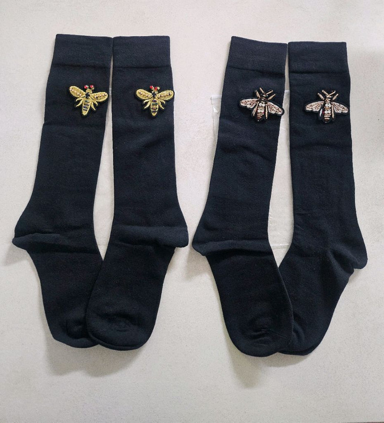 중목이상길이입니다. 니삭스에서 살짝내려오는길이이고 큐빅장식고급지고 예뻐요 재질탄탄하니 좋아요. 정상가격에서 할인한 개당가격이고 선택후 사실분만 챗주세요. 1. 골드꿀발 와펜 양말 2. 브론즈여왕벌 와펜 양말 거래특성상 교환 및 환불 불가합니다