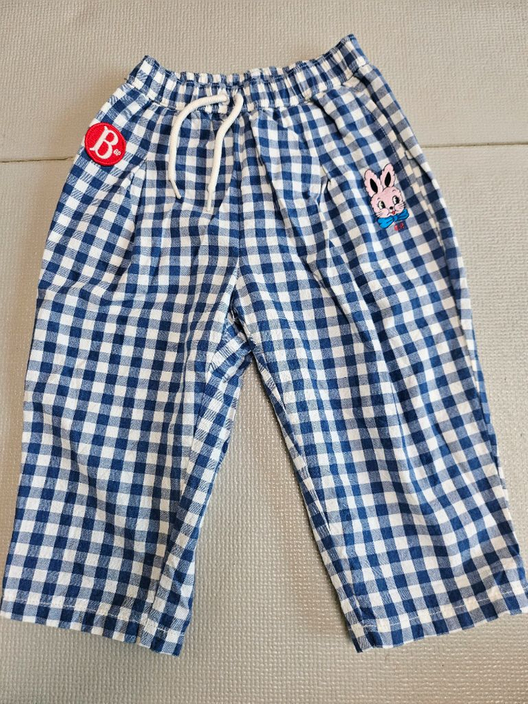 베베드피노 체크 바지입니다 사이즈는 100이고 이염 없고 자연스런 사용감정도 있습니다~ 중고특성상 예민맘은 피해주세요