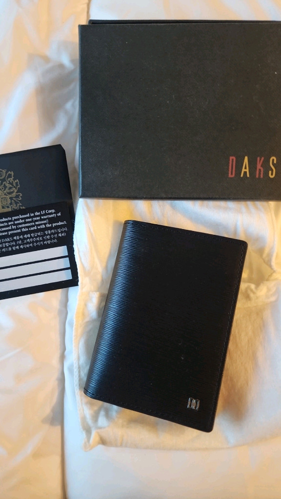 닥스 카드지갑 새상품 판매합니다. 현재 공홈에서 할인가 86,000원에 판매중입니다. 보증서 그대로 있고 아예 건들지않은 상품입니다. 간단하게 카드나 명함,지폐 수납하기 좋아요. 택배거래도 가능하고 직거래도 가능합니다. 궁금하신점 언제든 연락주세요. 010 274팔 331오