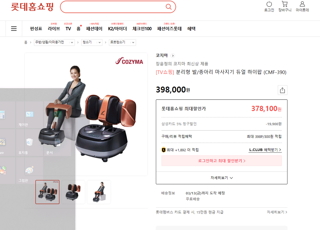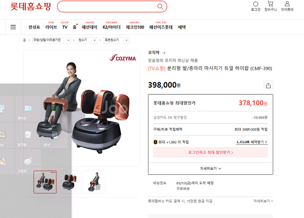 개인정보(거래정보)를 주고받는 행위는 사기에 노출될 수 있으므로 즉시 중고나라로 신고해 주세요코지마 발마사지기 팝니다 모델명 cmf 390 이구요 네이버쇼핑에 검색해보심 제품설명 잘나와있어요 안마의자가 있다보니 사용횟수가 적어서 내놓습니다 일산파주에서 직거래만 가능합니다